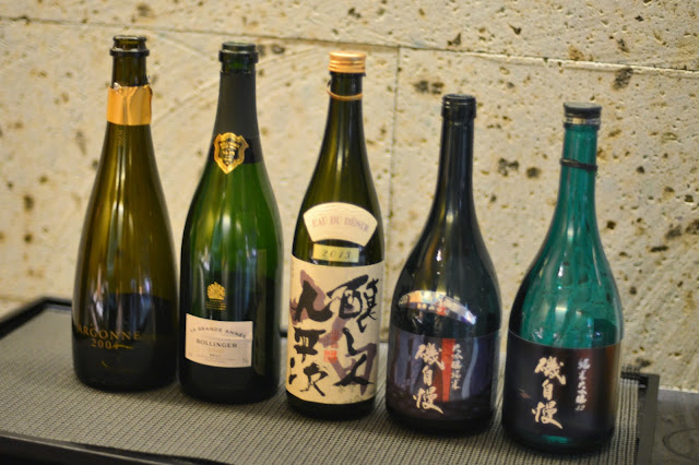 Three desserts were served - my favorite was the traditional warabi-mochi with kuromitsu syrup, served with the bowl of freshly brewed matcha. We brought a few bottles to share, starting with a pair of vintage champagne and a few sakes. I particularly enjoyed the Isojiman 42 Spring Breeze Junmai Daiginjo, dry on palate with a hint of refreshing floral and melon aroma, pairing well with the lighter courses served in the earlier stage of the dinner.